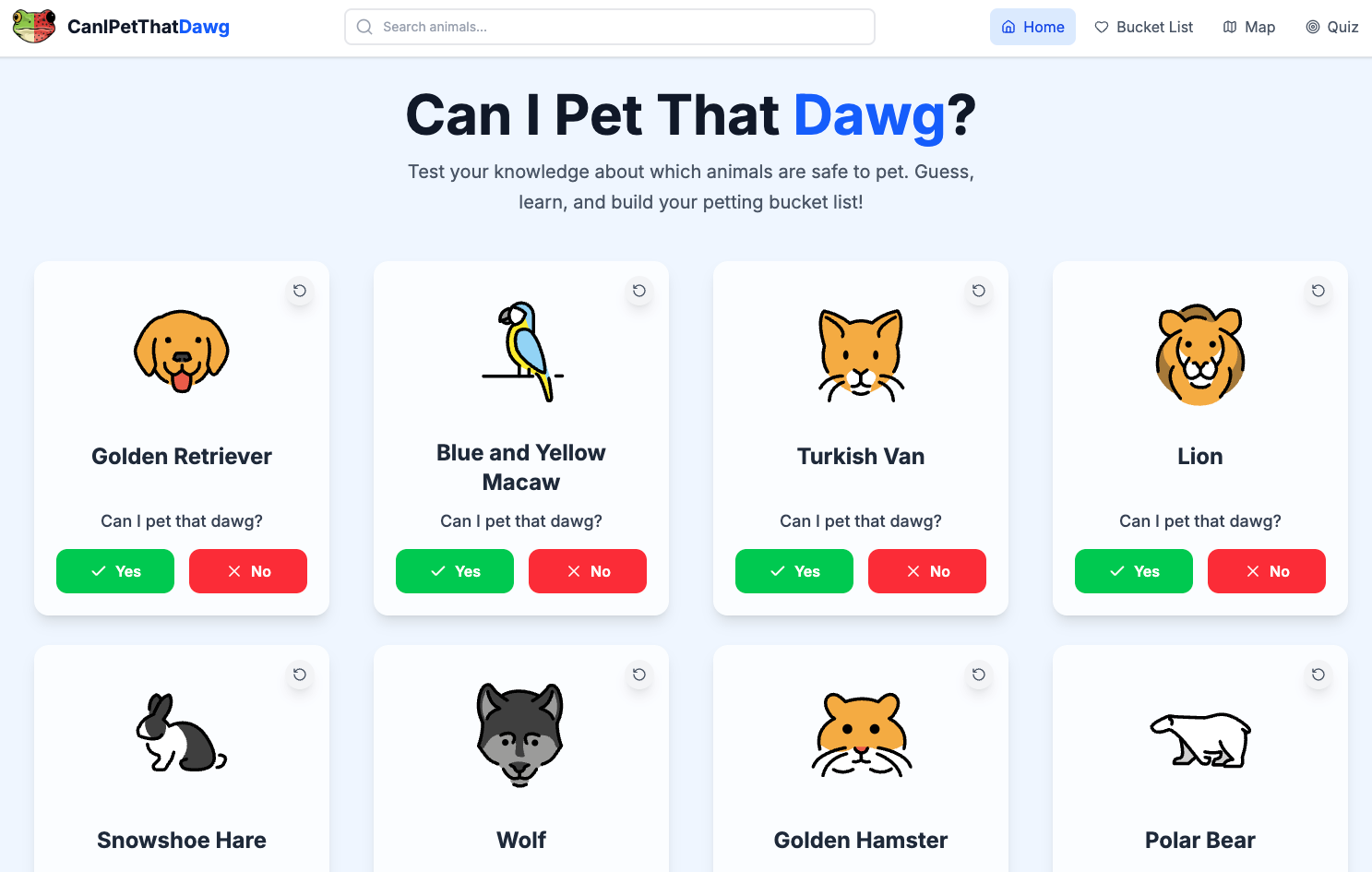 Sometimes you encounter a cute cat at a cafe, an emporer penguin at the zoo, or an Australian box jellyfish surfing off the Great Barrier Reef, and you ask yourself, “Can I pet that dawg?” Well, you might be surprised to learn that the answer is not always “Yes!”. The world is sometimes a dangerous place, so stay safe out there, study up, and test your knowledge: